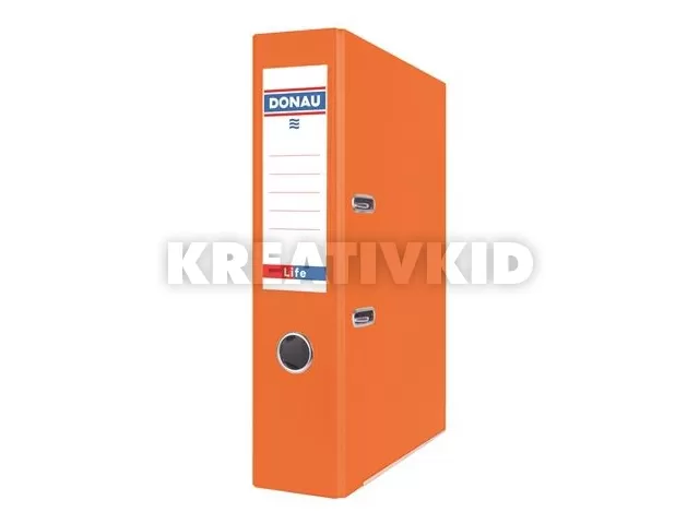 Iratrendező, 75 mm, A4, PP/karton, élvédő sínnel, DONAU "Life", neon narancssárga