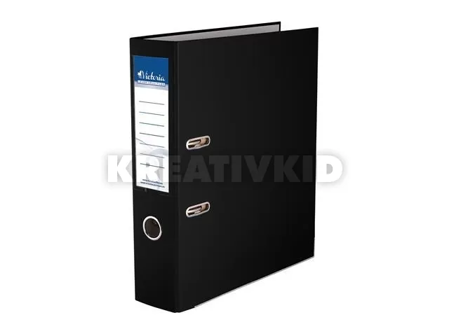 Iratrendező, 75 mm, A4, PP/karton, élvédő sínnel, VICTORIA OFFICE, "Basic", fekete