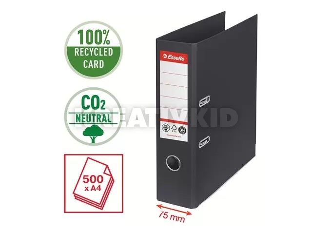 Iratrendező, 75 mm, A4, Co2-semleges, élvédő sínnel, ESSELTE "No.1", fekete