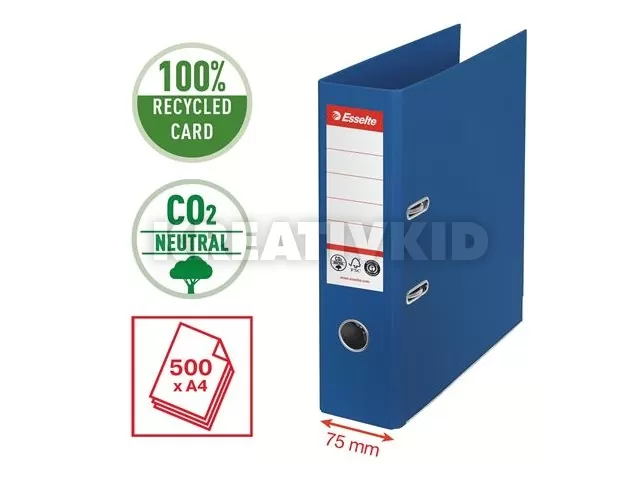 Iratrendező, 75 mm, A4, Co2-semleges, élvédő sínnel, ESSELTE "No.1", kék