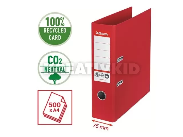 Iratrendező, 75 mm, A4, Co2-semleges, élvédő sínnel, ESSELTE "No.1", piros
