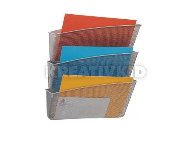 Irattartó, fali, fémhálós, 3 zsebes, ALBA, ezüst