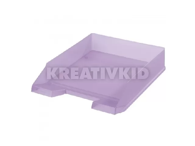 A4-es iratok rendszerezéséhez műanyag irattartó tálca Classic, középen kivágott szögletes fogórésszel. Használható önállóan, de egymásba illesztve és lépcsőzetesen eltolva is, átlátszó lila.