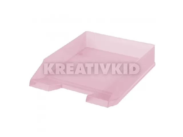 A4-es iratok rendszerezéséhez műanyag irattartó tálca Classic, középen kivágott szögletes fogórésszel. Használható önállóan, de egymásba illesztve és lépcsőzetesen eltolva is, átlátszó rózsaszín.
