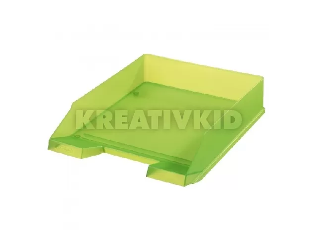 A4-es iratok rendszerezéséhez műanyag irattartó tálca Classic, középen kivágott szögletes fogórésszel. Használható önállóan, de egymásba illesztve és lépcsőzetesen eltolva is. Átlátszó zöld kivitelben.