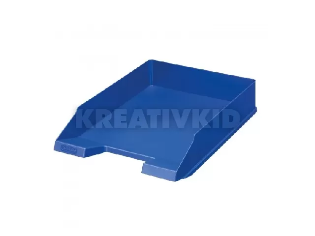 A4-es iratok rendszerezéséhez műanyag irattartó tálca Classic, középen kivágott szögletes fogórésszel. Használható önállóan, de egymásba illesztve és lépcsőzetesen eltolva is. Kék kivitelben.