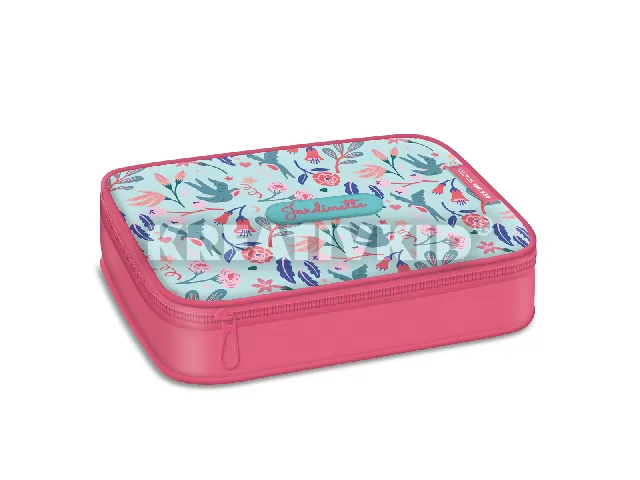 Többszintes, töltetlen, cipzáras tolltartó. Belül textillel bevont merev lapokkal, gumis kialakítással 30 ceruza számára az írószerek tárolásához és egy cipzáras belső zsebbel.