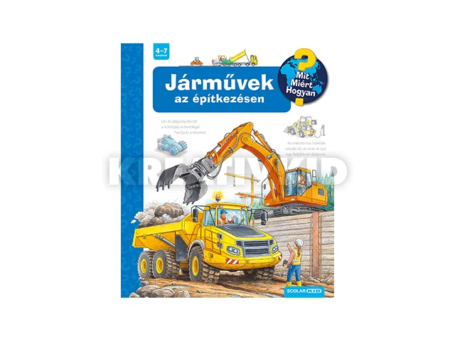 A népszerű Mit? Miért? Hogyan? sorozat 56. kötete az építkezésen megforduló autók, teherautók, munkagépek világába vezeti be az óvodás és kisiskolás korosztályt. Legyen szó házépítésről, út-, alagút- vagy játszótérépítésről, minden kérdésre választ kaphatnak a gyerekek.Honnan jönnek a munkagépek az építkezésre? Ki viszi a gépeket az építkezésre? Mi minden tudnak a markolók? Miért nincs mindegyik markolónak kereke? Mivel szállítják a csöveket, a kavicsot és a lemezeket? Mivel szállítják a betont? Mi emeli fel a legnehezebb terhet? Mikor használnak darut? Hogyan vájnak alagutat a sziklába? Hogyan kerülnek a földbe a csövek? Mivel építik az utakat? Hogyan kerül az aszfalt az útra? Ki segít a játszótér építésénél? Mely gépek dolgoznak árammal? Hol dolgoznak a legnagyobb gépek? Milyen trükköket tudnak az építőgépek?A már hazánkban is közkedvelt Ravensburger-játékok közé tartozó képes szakkönyvsorozat kedves illusztrációkkal, a gyerekek életkorának megfelelő információkkal ad választ a rengeteg kérdésre. Minden egyes oldal új témakört jár körül, melyek részletgazdagságában a felnőttek segíthetnek eligazodni, akár egy-egy óvodai vagy kisiskolás foglalkozás keretében. A sorozat nyomdai kivitelezése egyedülállóan magas színvonalú. Fő különlegessége, hogy minden könyv közel 50 titkos ablakot rejt, melyek fedelét felnyitva a gyerekek kielégíthetik kíváncsiságukat.
