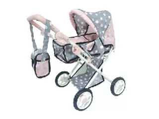 Bambolina: Játék babakocsi árnyékolóval, mózeskosárral - rózsaszín
