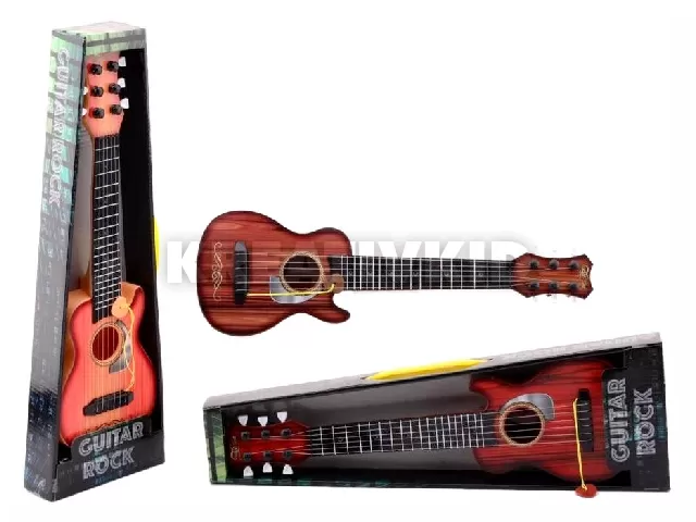 Pengesd a gitár húrjait, tanulj zenélni! A Játék gitár egy műanyag testű, damil húrokkal készült hangszer, ami egy spanyol gitárra hasonlít. A gitárhoz egy pengető is tartozik. A gitárral gyakorolni tudod a pengetést, illetve alapvető zenei fogásokat is el tudsz sajátítani. A Játék gitár hossza: 45 cm.