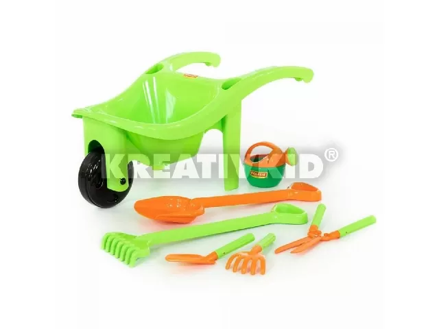 A talicska mérete: 71 x 34 x 32 cm. A lapát és gereblye mérete: 49 cm. A kerti szerszámok mérete: kb.19 cm.
