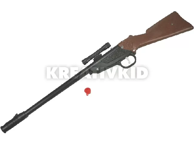 Vadássz állatokra, gyűjtsd be a trófeát a játék vadászpuskával! A játék vadászpuska egy fekete, műanyagból készült lőfegyver, optikai irányzékkal. A puska felhúzós, és egy apró dugó gondoskodik arról, hogy elsütéskor pukkanjon egyet. A dugót érdemesa puskához kötni, hogy a légnyomástól ne repüljön el. A Játék vadászpuska hossza: 60 cm.