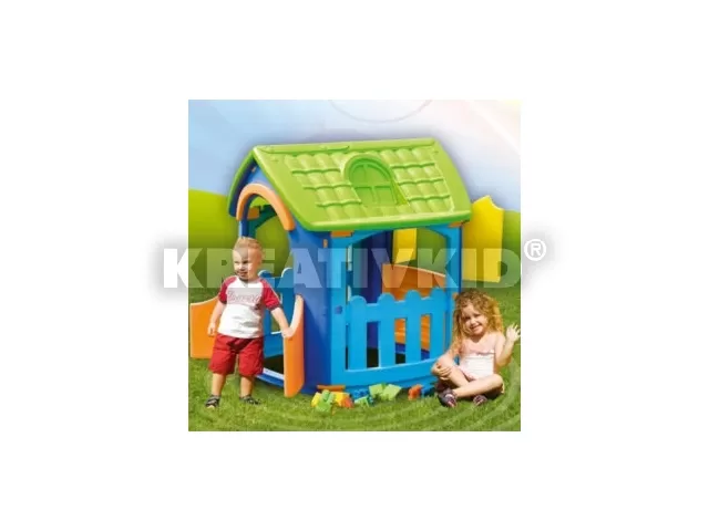 Igazi nyári kalandokhoz való játszóház, fiúknak és lányoknak egyaránt. Az ajtó és ablak könnyen nyitható, legömbölyített szélei segítik a kicsi kezek munkáját. A kiváló minőségű műanyag házikó teteje fedett, véd az erős napsütéstől, de oldalán a rácsos kerítés szellőssé teszi. 2-3 kisgyerek vidáman elfér benne, akár állva is. Összeszerelése egyszerű, a csomagolás minden szükséges elemet, és részletes leírást tartalmaz.