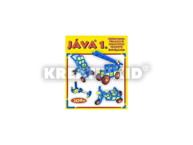 Építs különféle építményeket, gépeket a Jáva műanyag építőkészlettel! A 209 darabos Jáva 1 építőjáték készlet kék és sárga színű építőelemeket, illesztékeket, kerekeket, csörlőket és kiegészítőket tartalmaz, amikből bútorokat, munkagépeket, használati tárgyakat tudsz összerakni. Az építőelemeket könnyű összerakni, és miközben építkezel, jobb lesz a kézügyességed, a térlátásod és a műszaki érzéked is. A Java 1 építőjáték együtt használható más Jáva készletekkel is. Tartalom: 209 darab műanyag építőelem, ötletes füzet. A Jáva 1 építőjáték csomagolási méretei: 27 x 7 x 24 cm.