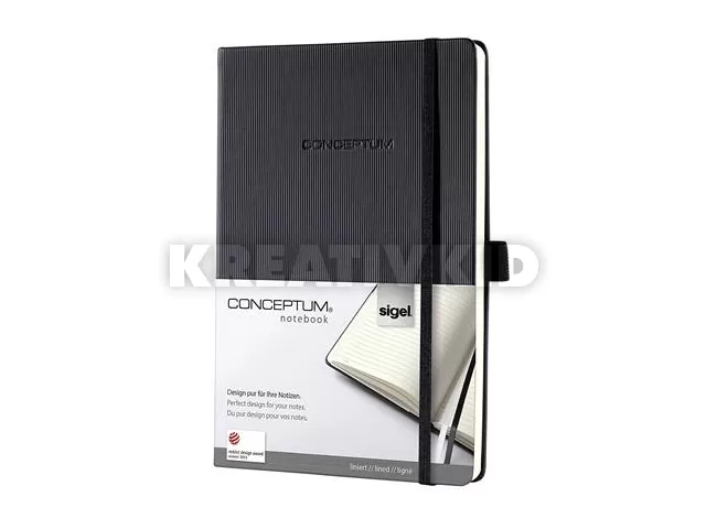 Jegyzetfüzet, exkluzív, A5, vonalas, 97 lap, keményfedeles, SIGEL "Conceptum", fekete