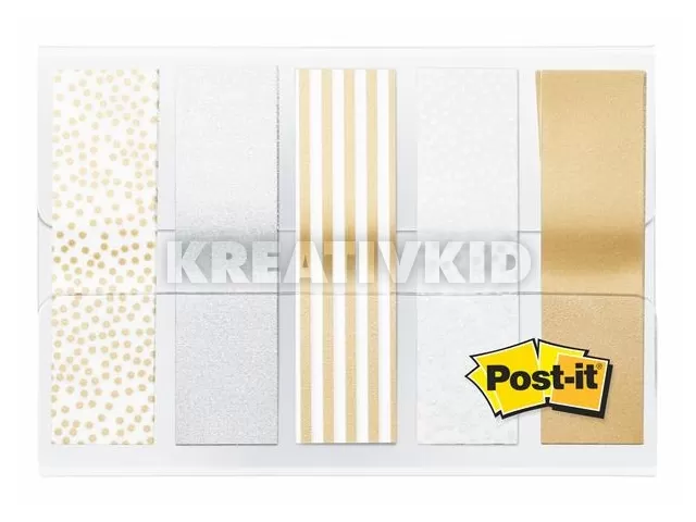 Jelölőcímke, műanyag, 5x20 lap, 11,9x43,2 mm, 3M POSTIT, fémes nyomatok
