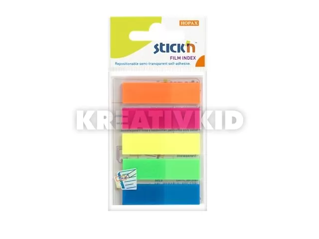 Jelölőcímke, műanyag, 5x25 lap, 45x12 mm, STICK N, neon színek