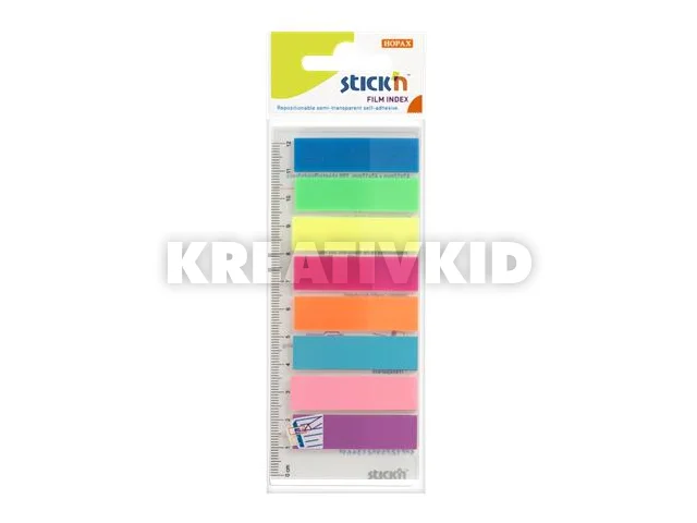 Jelölőcímke, műanyag, 8x25 lap, 45x12 mm, STICK N, neon színek