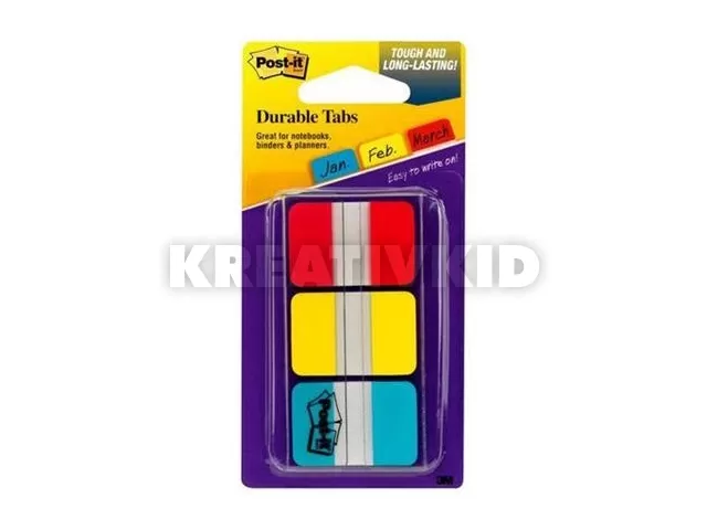 Jelölőcímke, műanyag, megerősített, 3x22 lap, 25x38 mm, 3M POSTIT, vegyes