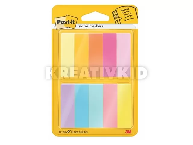 Jelölőcímke, papír, 10x50 lap, 15x50 mm, 3M POSTIT, vegyes