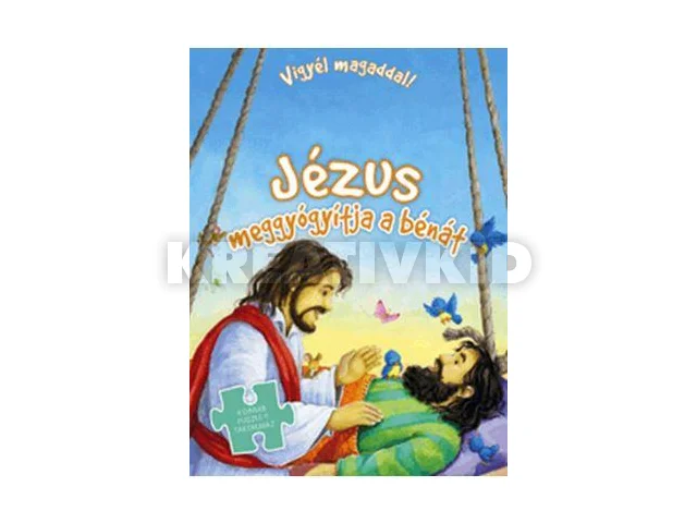 Az egyszerű nyelven íródott, Gill Guile gyönyörű rajzaival illusztrált könyvecske a kisgyermekek tökéletes első olvasmánya arról, ahogy Jézus meggyógyítja a bénát, akit a barátai engedtek le hozzá a tetőn keresztül.##Négy, 16 darabból álló puzzle-t tartalmaz, különleges kialakítása miatt pedig játszi könnyedséggel vihetik magukkal a gyerekek. Márk evangéliuma 2:1-12 alapján.