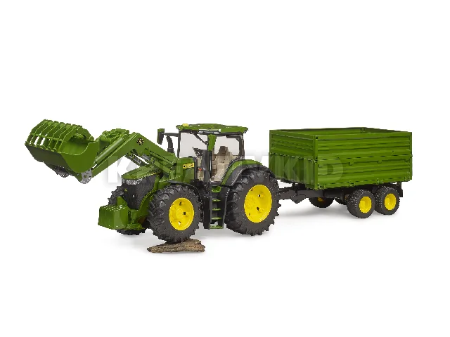 John Deere 7R 350 traktor homlokrakodóval és tandemtengelyes billenő pótkocsival