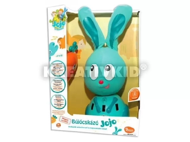 Jojo a bújócskázó interaktív nyuszi, nagyon szeret játszani. Szerinted mi lehet az a játék amit a legszívesebben játszik? Hát persze, hogy bújócskázni szeret. Jojo a nyuszi mielőtt elkezd számolni a füleit a szeme elé hajtja, mert ugye nem szabad lesni. Utána elszámol tízig, addig van időd elbújni a varázsrépával, majd felemeli fülecskéit Jojo és elindul hogy megkeressen. Igazi szórakozás Jojoval a bújócskázás. Vigyázz mert Jojo nagyon ügyes ebben a játékban. Na lássuk ki lesz az ügyesebb Jojo vagy te.