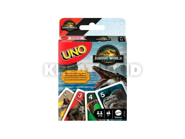 Az őskorban és a Jurassic World rajongóknál biztos, hogy az UNO Jurassic World Rebirth lenne az UNO legnépszerűbb változata. Ez az, ahol az UNO világa a film ihlette dinoszauruszokkal és izgalmas jelenetekkel találkozik. Ebben a készletben az alapjátékhoz hasonlóan az a játékosok célja, hogy minél hamarabb megszabaduljanak az összes kártyájuktól a színek és számok párosításával, de van egy speciális szabály, a "T-Rex támadás", ami extra izgalmakat vihet a partiba. Persze a végén a legfontosabb szabály változatlan: Ha már csak egy kártya van a kezedben, ne felejtsd el azt bömbölni: UNO! 7 éves kortól ajánljuk. A színek és díszítések eltérhetnek.