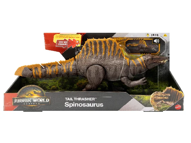 A Jurassic World világa fantasztikus teremtményeket rejt. Az egyik köztük ez a Kolosszális Spinosaurus, ami mindkét végén félelmetes. A Jurassic World: Újjászületés film ihlette jellegzetes külsejével, a vitorla formájú tarajával, lapos, krokodilszerű fejével és éles fogaival nem fél senkitől. A közel 53 cm hosszú és 24 cm magas bestia részletesen kidolgozott, élethű külsővel, vérfagyasztó hanggal és félelmetes, támadó mozgással érkezik, hogy a gyerekek valóban beleélhessék magukat a Jurassic World világába. Végtagjai mozgathatók, rettentő bömbölése, az álkapcsának csattogtatása, valamint a fejének és a farokrészének oldal irányú csapkodása gombbal aktiválható, ezzel is növelve a csaták, vagy a zsákmányszerzés valósághű játékélményét. A gomb többszöri megnyomása hevesebb reakciót vált ki. A rejtett kódot beolvasva a gyerekek bármely okoseszközzel (Android vagy iOS) feloldhatják a Spinosaurus digitális változatát az ingyenes Jurassic World Play alkalmazásban, ahol további játékok is várják őket. Az okoseszköz nem tartozék. A színek és díszítések eltérhetnek. Szuper ajándék lehet 4 éves vagy idősebb gyerekeknek és rajongóknak egyaránt.