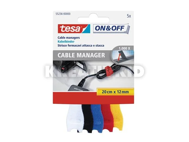 Kábelkötegelő, tépőzáras, TESA "On&Off", vegyes színek