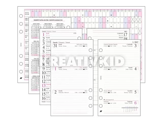 Kalendárium betét, tervező, heti, "M", SATURNUS, fehér 2024