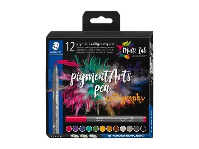 Kalligrafikus rostirón készlet, 2 mm, STAEDTLER "Pigment 375", 12 különböző szín