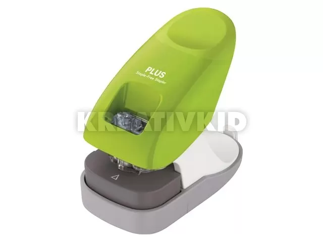 Kapocs nélküli tűzőgép, asztali, 10 lap, PLUS, zöld