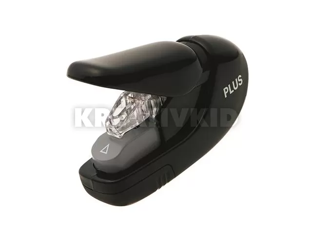 Kapocs nélküli tűzőgép, kézi, 8 lap, PLUS, fekete