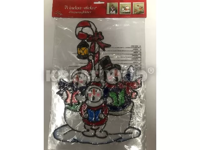 Karácsonyi dekor ablakmatrica 30 cm Daloló hóemberek