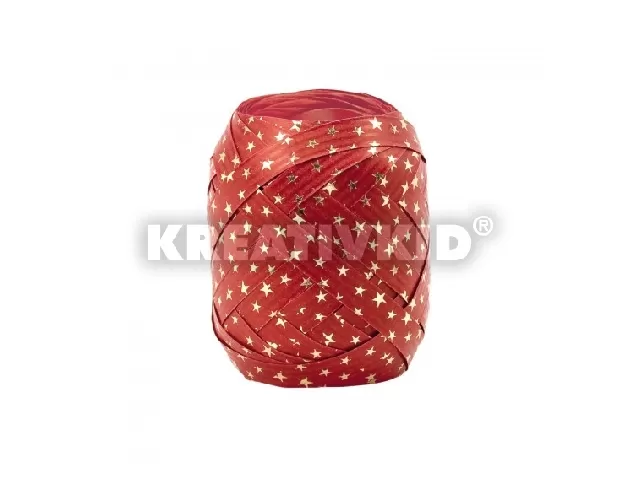 Karácsonyi jumbó tojáskötöző Space, 12 m x 10 mm, piros alapon arany csillagokkal