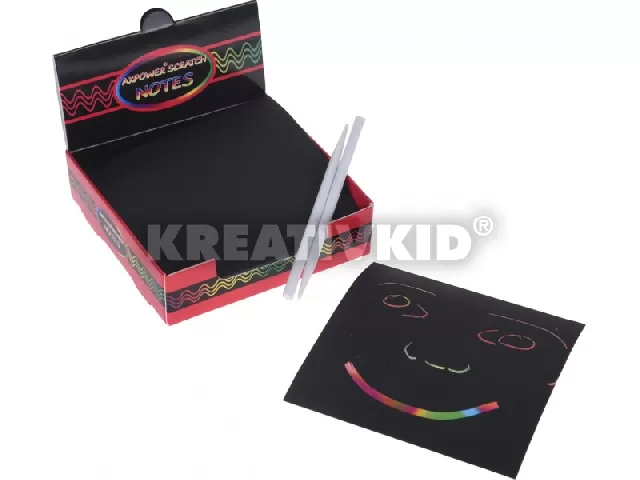 Karc papír, szivárvány színű, 90 db-os, 9x9 cm + 2 karcoló toll