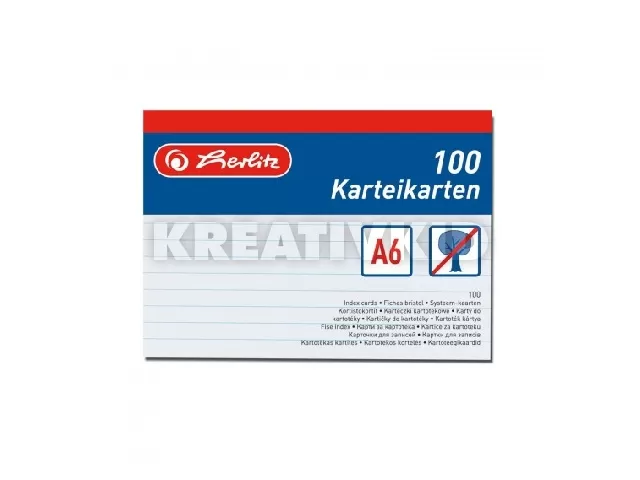 Kartotékkártya A6-os méretben, famentes, 170g/m2-es papírból, vonalas kivitelben, 100 ív/csomag, fehér színben.