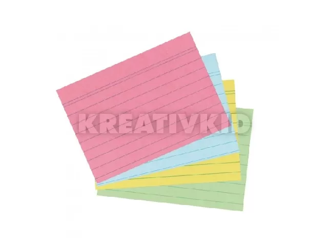 Kartotékkártya A6-os méretben, famentes, 170g/m2-es papírból, vonalas kivitelben, 200 ív/csomag (50-50 db piros, kék, sárga, zöld).