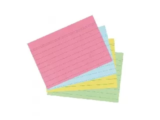 Kartotékkártya A6-os méretben, famentes, 170g/m2-es papírból, vonalas kivitelben, 200 ív/csomag (50-50 db piros, kék, sárga, zöld).