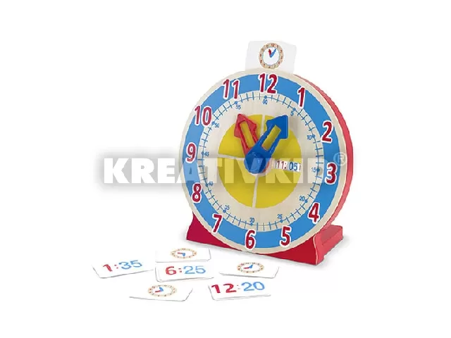 Remek készségfejlesztő játék a Melissa&Doug-tól, melynek segítségével a gyermekek könnyedén, játszva sajátíthatják el az óra működését, az idő fogalmát és megállapítását.