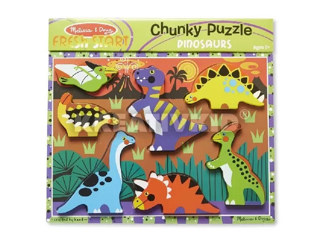 Kifejezetten kisgyermekek számára kifejlesztett puzzle a Melissa&Doug-tól! A kirakó darabjai nagyméretűek, ezáltal a csöppség könnyedén meg tudja fogni. A dinók formája mellett a rajzok is segítik a piciket a darabok megfelelő helyére való illesztésben.