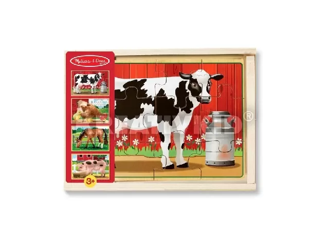Melissa & Doug, fa kézségfejlesztő játék, puzzle, farm állatai