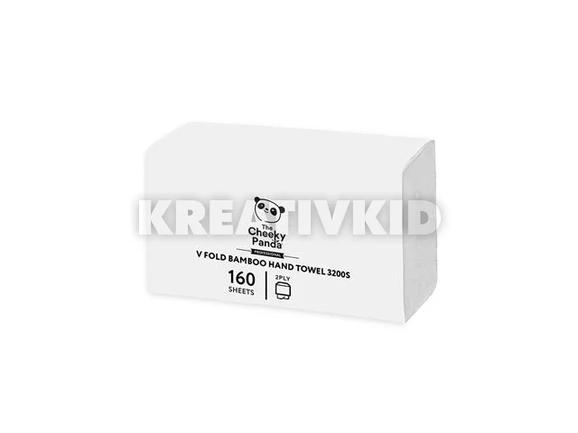 Kéztörlő, bambusz, V hajtogatott, 2 rétegű, 160 lap, 21,5x22,5 cm, CHEEKY PANDA, fehér