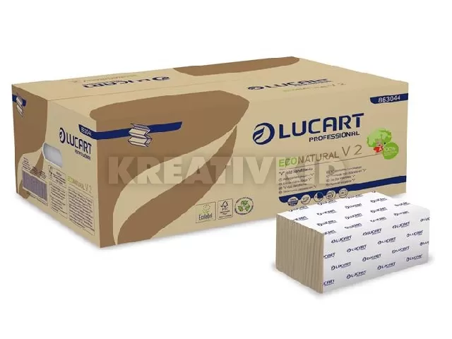 Kéztörlő, V2 hajtogatott, 2 rétegű, 190 lap, Havanna, LUCART, "EcoNatural 20 csomag/karton