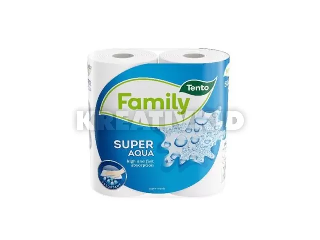 Kéztörlő, tekercses, 2 rétegű, TENTO "Family Super Aqua", fehér