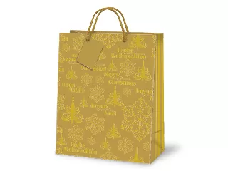 Karácsonyi exkluzív kivitelű papír díszzacskó ajándékkísérővel és zsinórfüllel az Ars Una Stúdió kínálatából! Külseje ofszet arany és fekete nyomással...