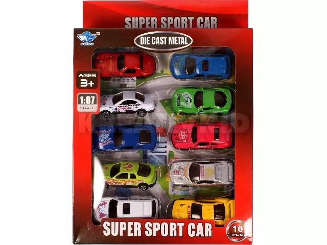 Száguldozz az autópályákon fém kisautókkal! A Fém kisautó készletben 10 darab színes, sportos megjelenésű játékautót találsz, Az autók 1:87 méretarányúak, a legtöbb versenypályával együtt használhatók. Az autók fém karosszériával rendelkeznek, a többi alkatrészük műanyag. Méret: 7 cm.