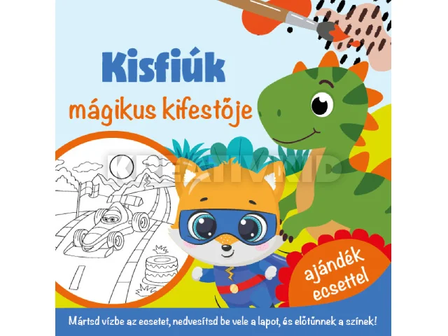 Csak egy kis víz és máris életre kelnek a képek! A Kisfiúk mágikus kifestője izgalmas jeleneteket rejt, melyek a vizes ecsettel való átfestés után színes formában bukkannak elő. Nincs szükség festékre vagy koszra csak ecsetre, amit ajándékba adunk a könyv mellé! Tökéletes választás minden kíváncsi kis felfedezőnek.