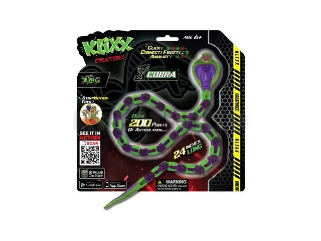 A több mint 200 mozgatható ponttal rendelkező Klixx Creaturez kobra figura olyan kattogtatható, mozgatható, stop motion videók és rövidfilmek készítéséhez felhasználható állatfigura, amely stresszoldó hatással is bír. A stop motion videók készítéséhez a gyerekeknek csak le kell tölteniük a Zing Studio alkalmazást, amelynek segítségével egyszerűen kreálhatnak videókat. A csomagoláson található QR-kód beszkennelésével pedig videókat nézhetnek meg a kis teremtményről.
